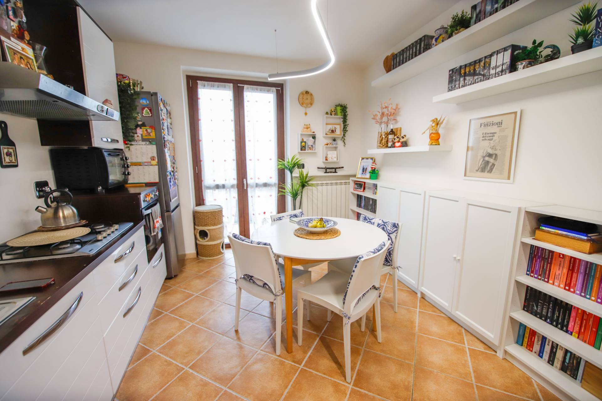 L'appartamento dispone di zona giorno con angolo cottura a vista, con balcone con affaccio a sud e vista mozzafiato sui colli canavesani, oltre al disimpegno, al bagno e alla camera da letto.